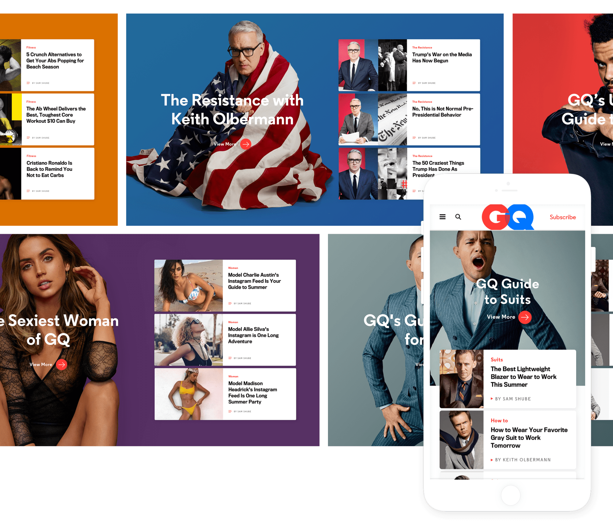 Limited Engagement: GQ relied on reverse chronological river templates to showcase all content.